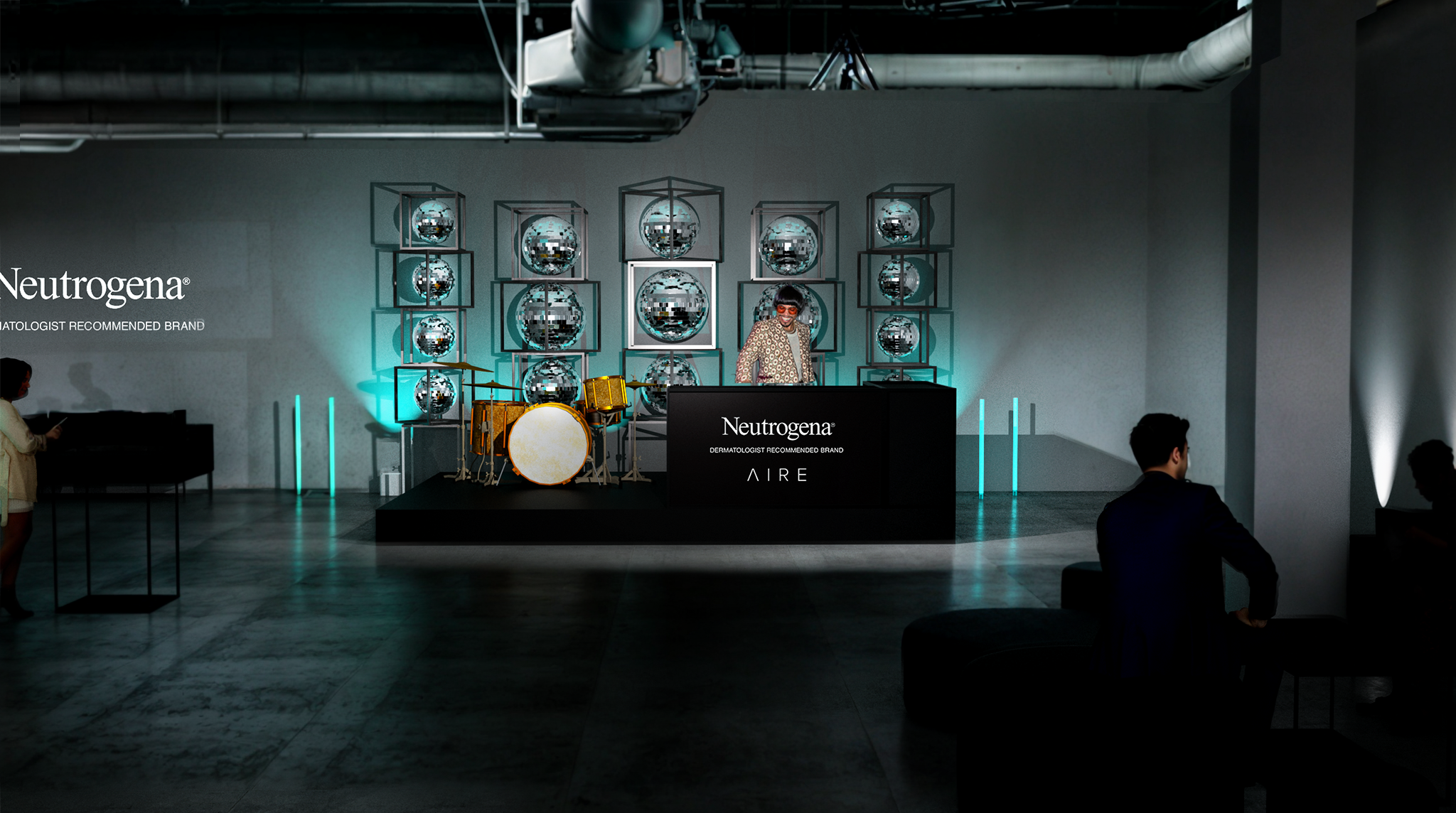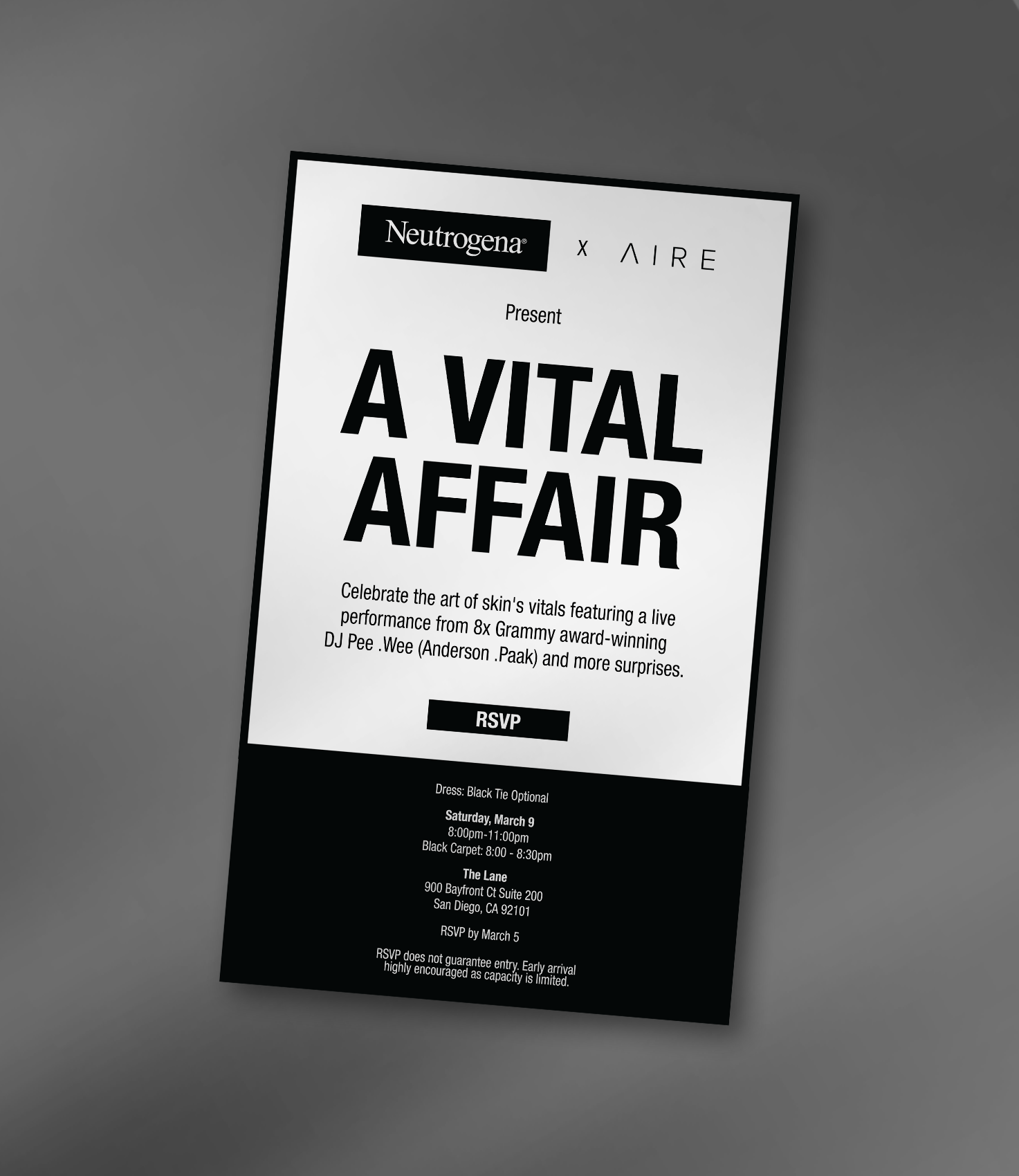 Step into an evening of pure elegance with Neutrogena x AIRE at the San Diego Skincare conference. Every detail exudes sophistication, from branded napkins to bespoke cocktails. Amidst the glamour, the tagline "Boost what's vital, not what's viral" echoes, reminding guests to prioritize substance over trends, hence the prominent makeup of Neutrogena product. It's an affair where style meets substance, nurturing both the senses and the soul, platformed by special guest performer, DJ Pee .Wee (Anderson Paak).